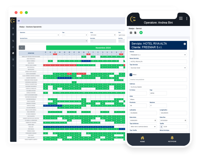 Gladyo consente una pianificazione avanzata basata su criteri variabili, come giorni specifici del mese (es: ogni primo lunedì del mese), ricorrenze regolari (es: ogni due settimane), giorni fissi della settimana (es: ogni mercoledì, esclusi i festivi), o pattern particolari (es: tutti i giorni pari o dispari); consentendo interventi di modifica massivi in modo rapido.
